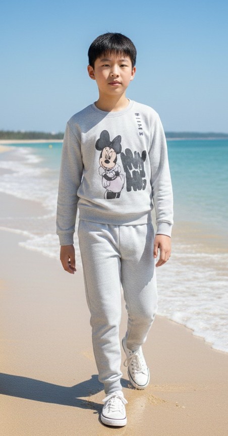 Design: The style is casual and comfortable, likely made of a soft jersey or fleece material. There is a small vertical brand or size strip visible on the chest area of the sweatshirt.
