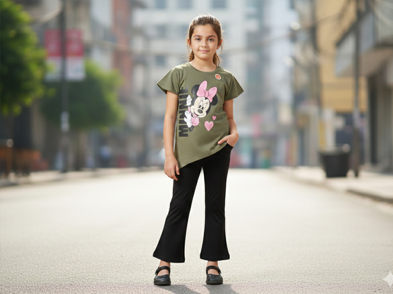 Set for Girls, Casual Style, Solid Color, Pleated Stripes, Soft And Comfortable Knitted Fabric, Short-Sleeved T-Shirt, Flared Trousers Suit, Suitable for Outdoor Wear